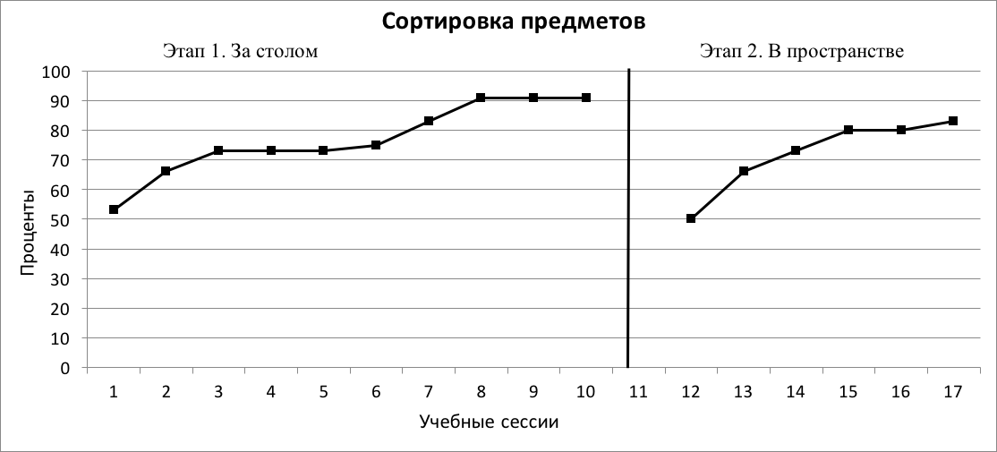 На основе тестирования VB-MAPP были установлены различные направления поведенческого вмешательства и проведена работа по данным направлениям. Результаты работы представлены на примере отдельных кейсов.