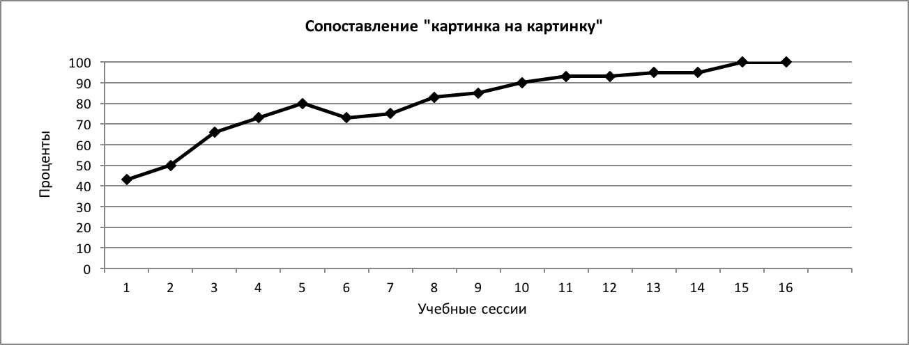 Рисунок 10. Динамика выполнения заданий (в процентном соотношении) в течение учебных сессий.